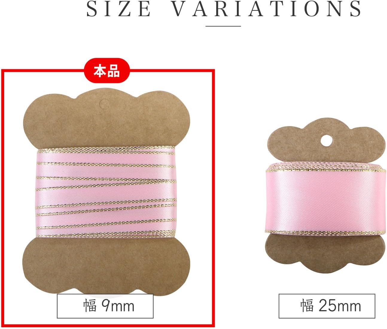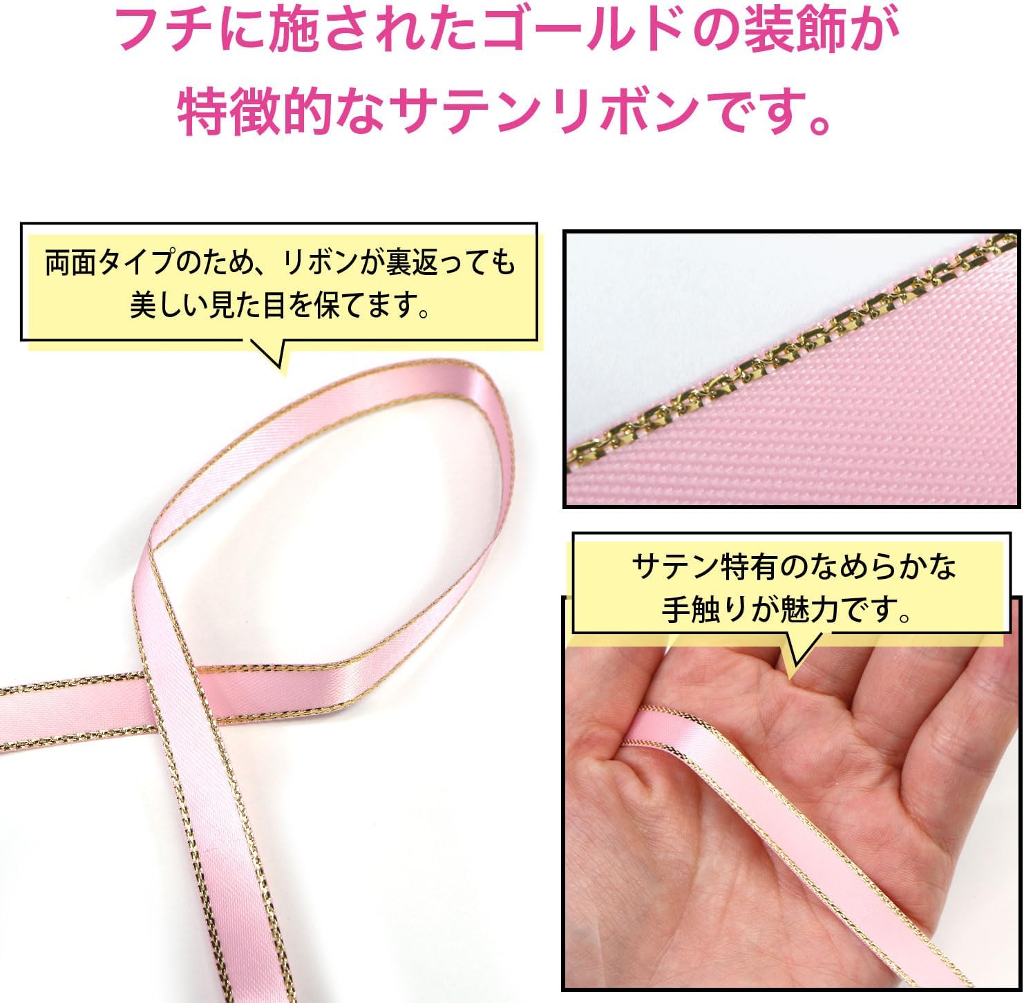 サテンリボン 【ピンク】 金 両面 幅9mmx5m エッジ装飾 ゴールド フチ テープ ギフト ラッピング 手芸 包装 ポリエステル きらきらぷんぷん丸 SRBN-028