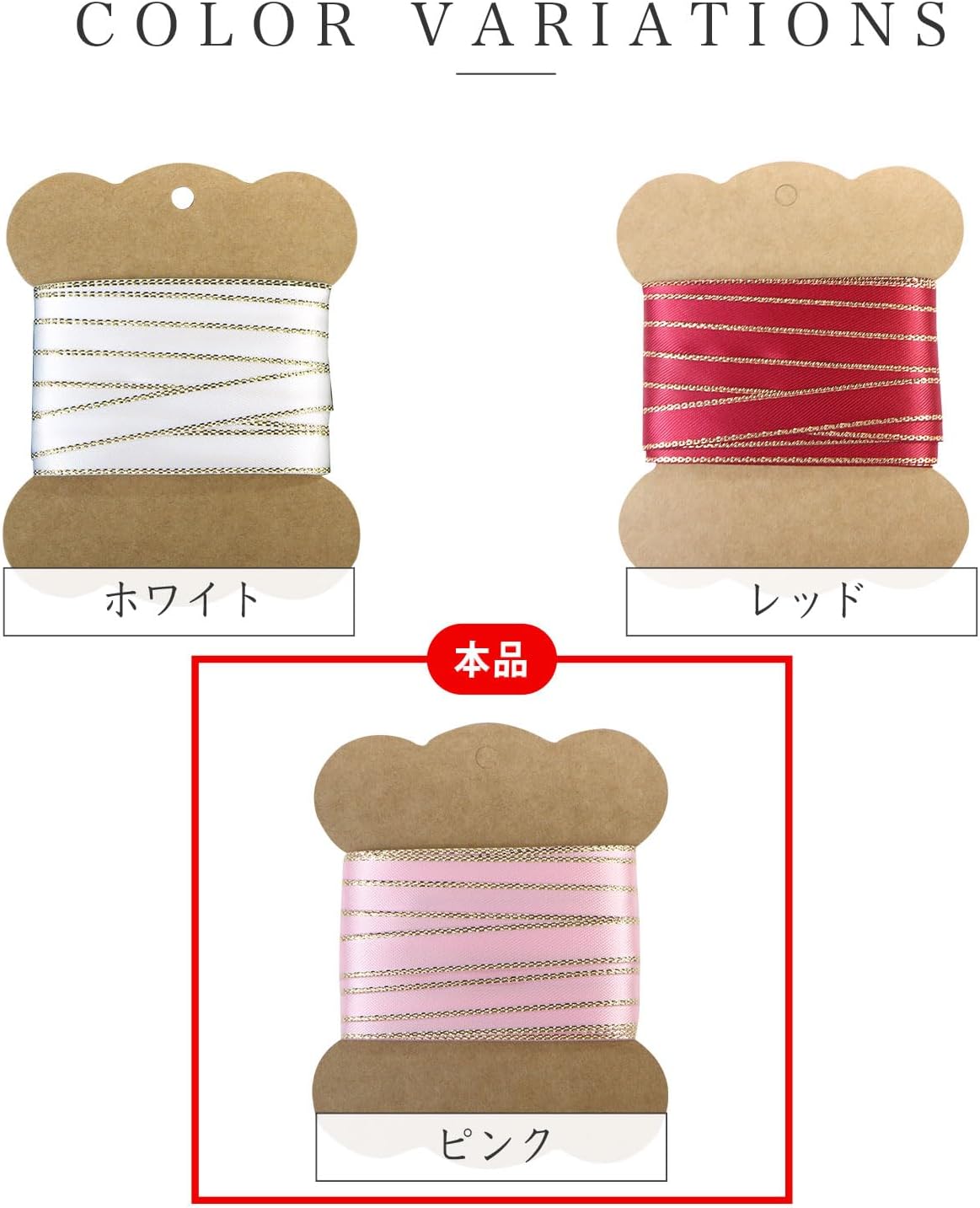 【リボンカラー】ピンク 【エッジカラー】ゴールド 【リボン幅】9mm 【全長】約5m