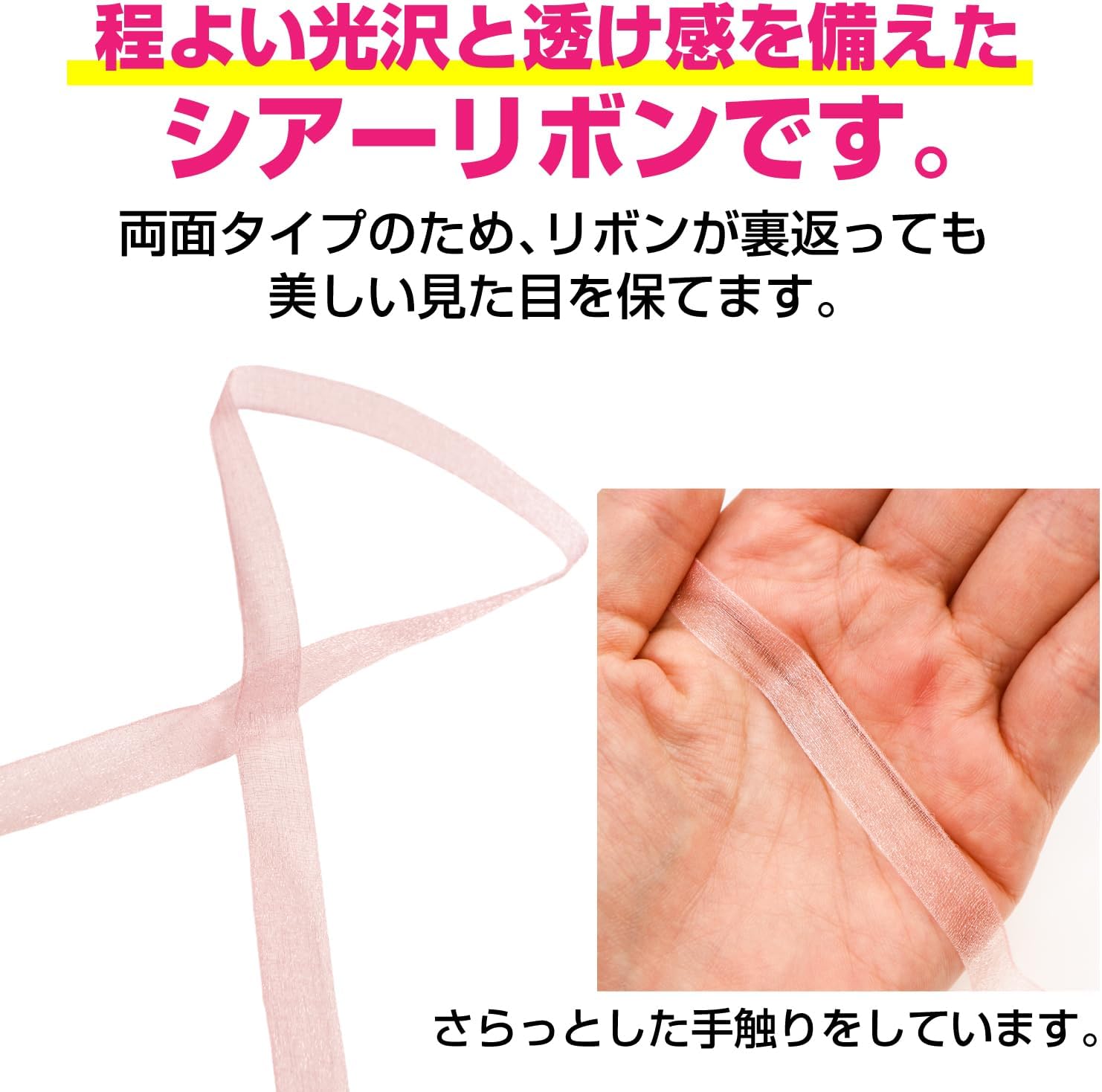 【材質】ナイロン 【仕様】両面タイプ(リボンが裏返っても美しい見た目を保てます)