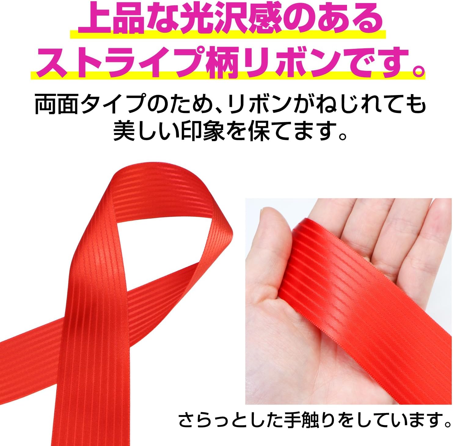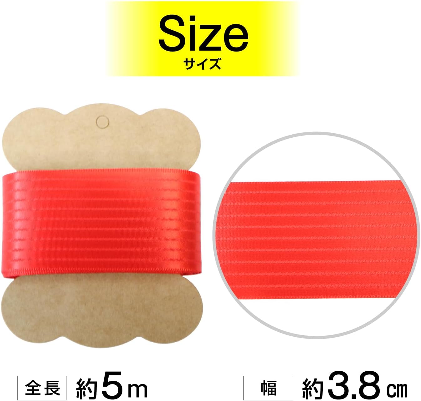 ストライプリボン 光沢あり【レッド】赤 38mmx5m 手芸資材 装飾用 縞模様 材料 ギフト ラッピング 包装 ポリエステル 太い きらきらぷんぷん丸 SRBN-038