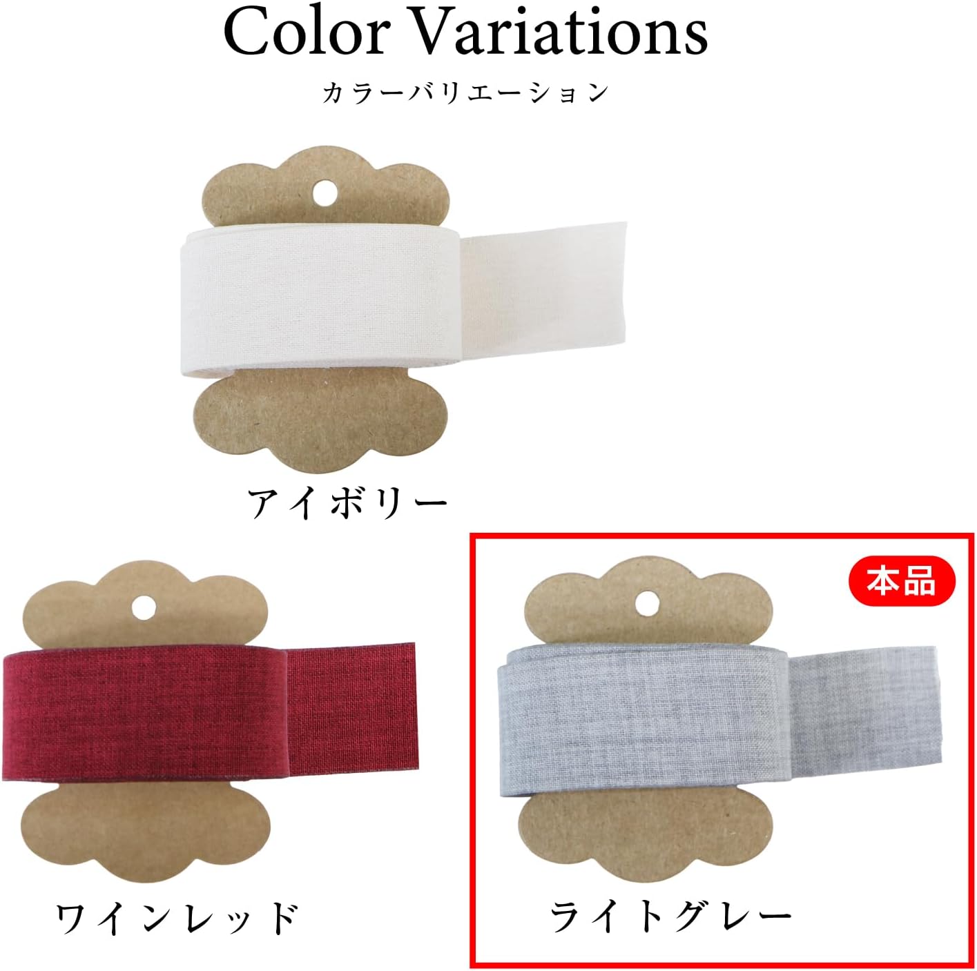 【特徴】リネン風のナチュラルな質感とマットな風合いが特徴のコットンリボンで、両面無地タイプのためリボン結びやギフト包装、ハンドメイド作品の装飾などに幅広く使える上品な手芸資材です。