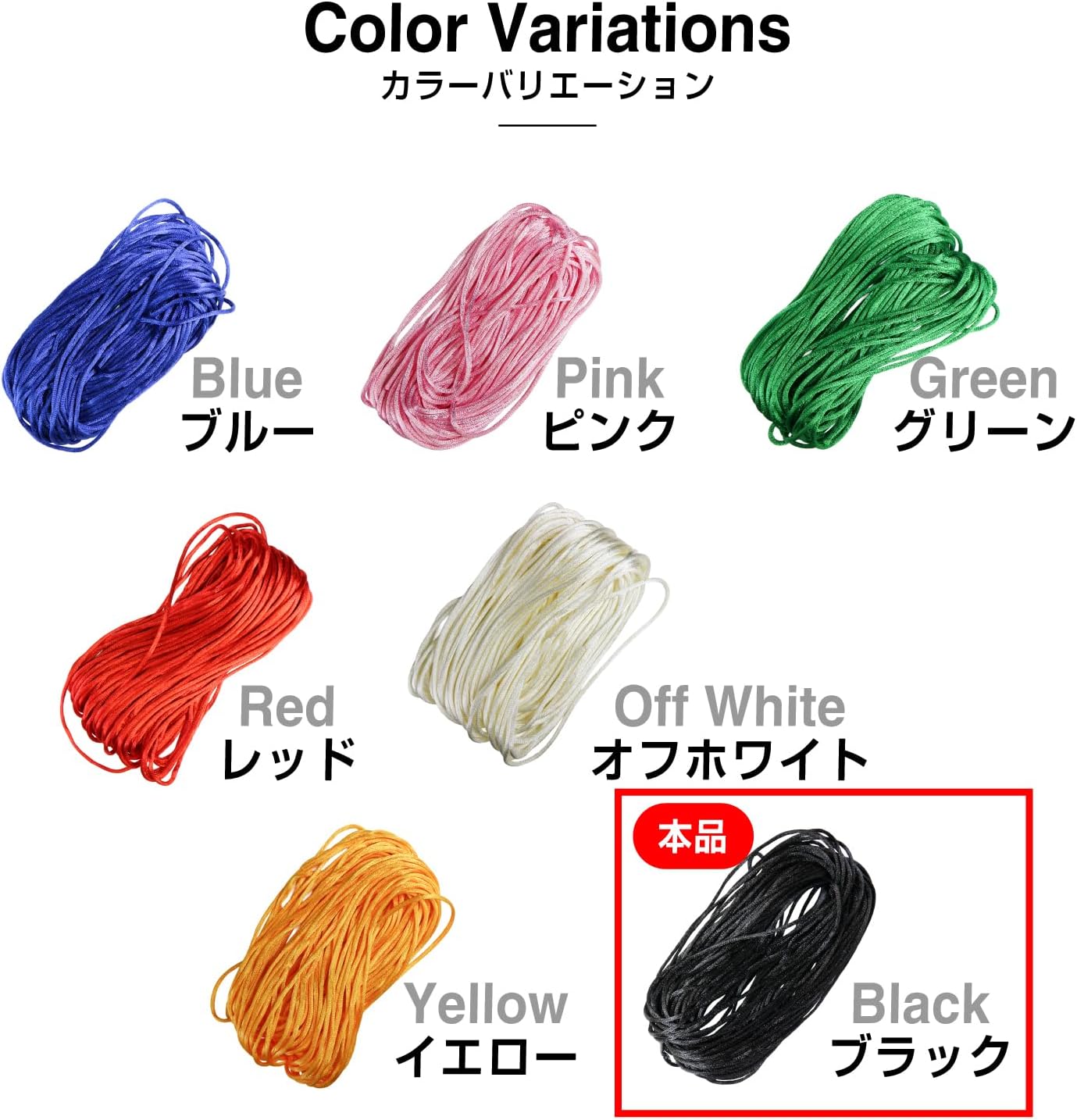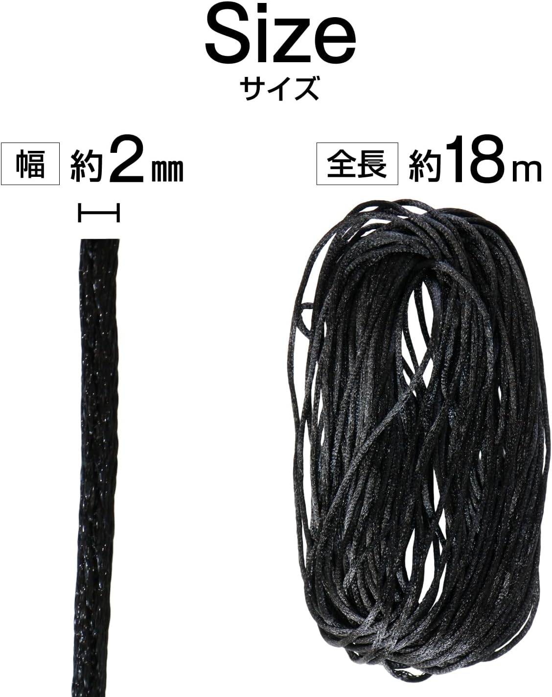 サテンコード ポリエステル 紐 中国結び【ブラック】黒 ロープ ツヤあり 光沢 飾り チャイナ 手芸 裁縫 ハンドメイド きらきらぷんぷん丸 WS-012